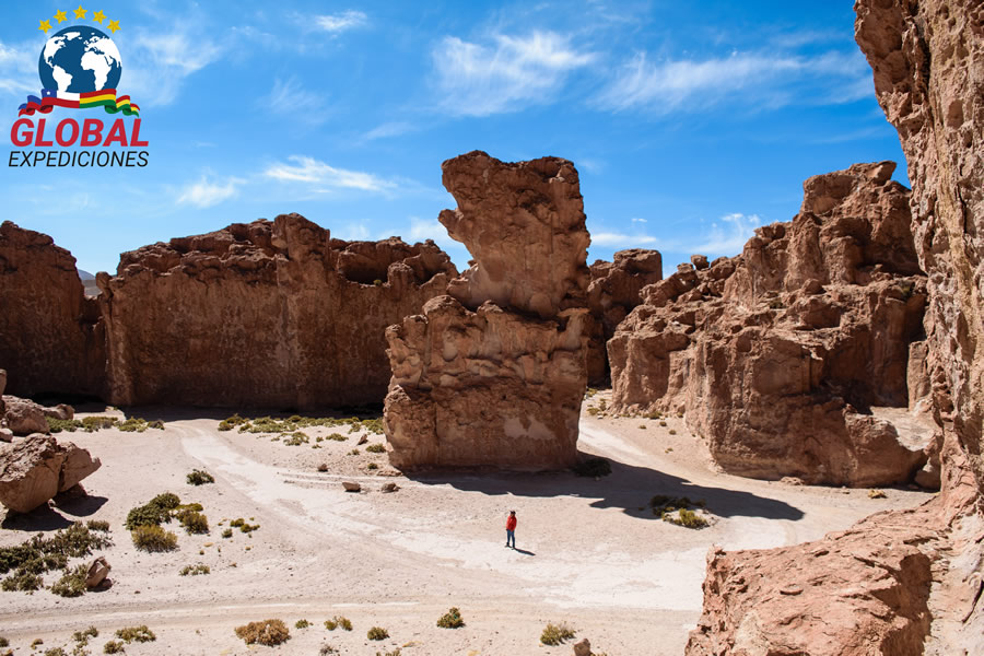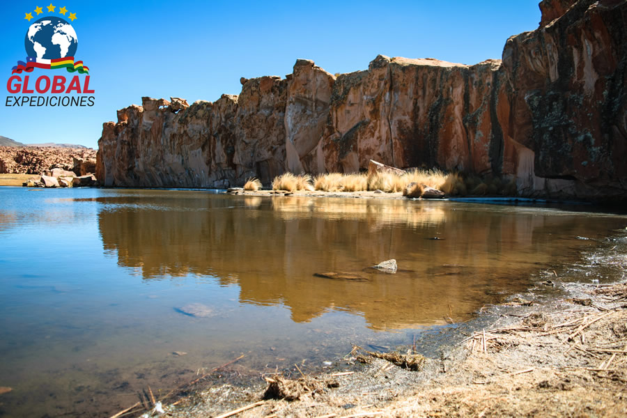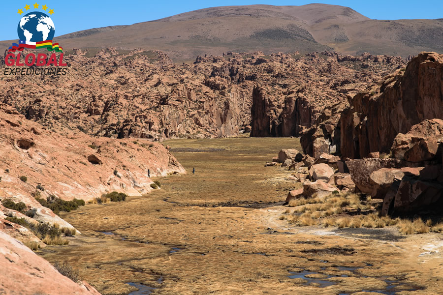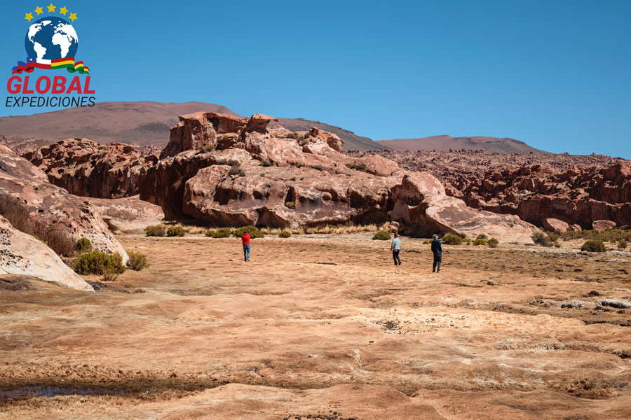 Comenzamos visitando Pinturas Rupestres - Después nos vamos al sector de Italia Perdida - Copa del Mundo - Camello, etc. donde se pueden observar formaciones de rocas. Pasamos por la Laguna Misteriosa, luego visitamos una gran cantidad de fauna altiplánica como Tawas o Gansos, y la vegetación de acuerdo al ecosistema - Cañón de Catal (o cañón de la anaconda por su formación elíptica). El almuerzo se servirá sobre la ruta. Valle de las Rocas - hasta llegar a un valle en donde habitan muchas comunidades altiplánicas. Estas comunidades se dedican a la crianza de animales andinos como, llamas, y alpacas. Pasamos por San Agustín. Terminamos el día en el HOTEL DE SAL BOLIVIA que se encuentra en la comunidad.