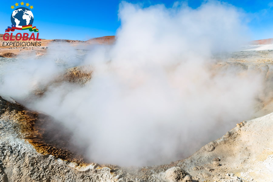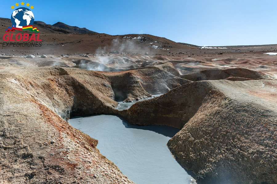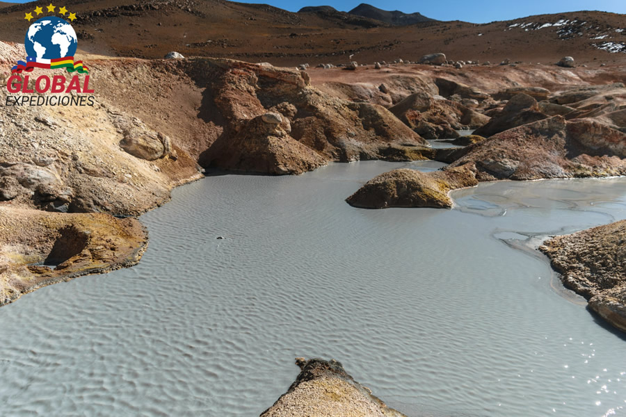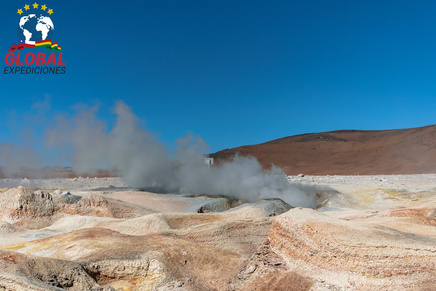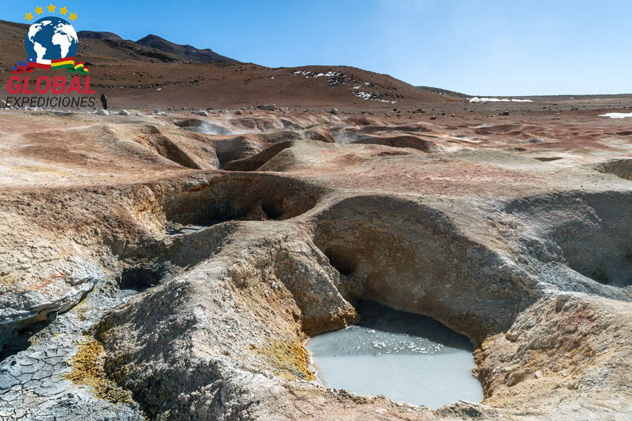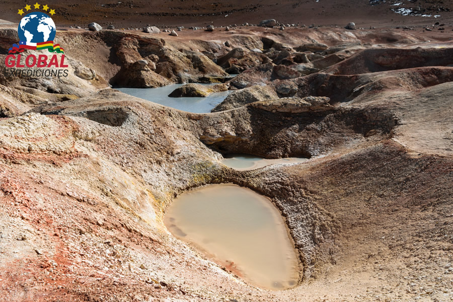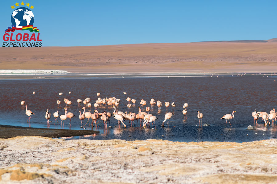 Comenzamos recogiendo a todos los pasajeros desde sus hoteles a partir de las 7:00 am a 7:30 am, luego cruzamos la aduana de Chile, aduana de Bolivia en Hito Cajón para ingresar a territorio boliviano. Donde se sirve el desayuno. Se hace el cambio de vehículo a jeep 4x4, comenzamos a visitar la Laguna Blanca - Laguna Verde que está a base del Volcán Licancabur - la unidad continúa hacia el Norte del desierto del Salvador Dali - Rocas del Desierto. Para luego continuar a la piscina de Agua Termal Polques - Géiseres del Sol del Mañana - Laguna Colorada en donde apreciamos miles de flamencos. Después iremos a instalarnos a un hostal de la Comunidad Mallku Villa Mar que está a una altura de 3.500 m.s.n.m. (Alojamiento y cena en el hostal).
